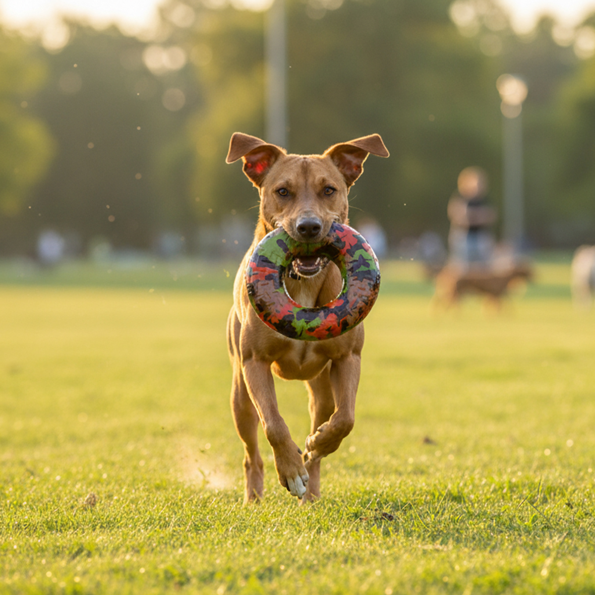 Anneau FuxTreme Ferribiella en TPR ultra-résistant, conçu pour les chiens actifs aimant mâcher et jouer. Sa matière souple mais robuste aide à canaliser l’énergie, favorise l’exercice et résiste aux morsures répétées, idéal pour le jeu quotidien.