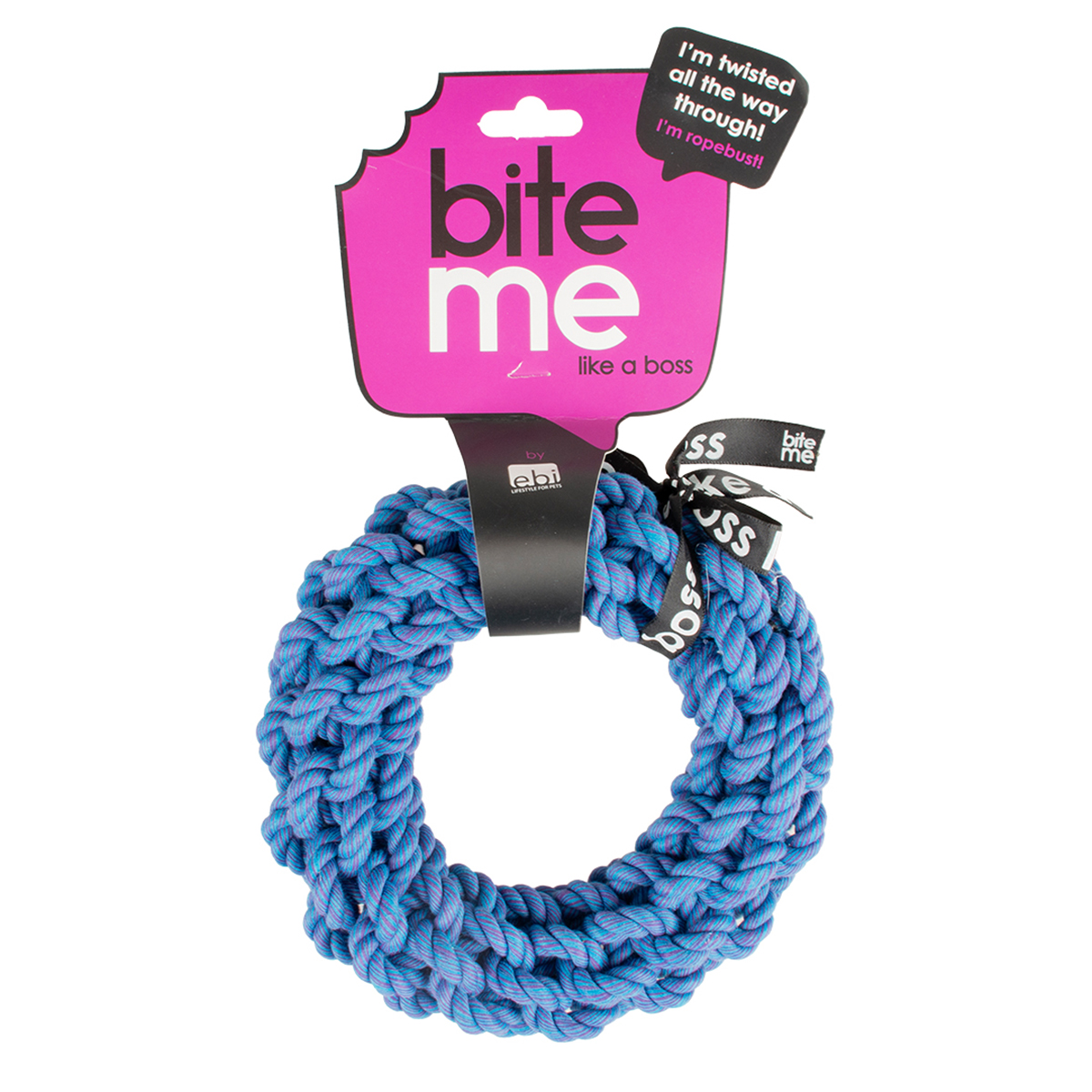 Découvrez bite me – anneau de traction pour chien, corde torsadée sans nœud visible, 100% coton solidement torsadé - sans polyester – 18x18x4cm – couleur bleu de laroy group, conçu pour offrir un usage quotidien pratique et confortable aux animaux de