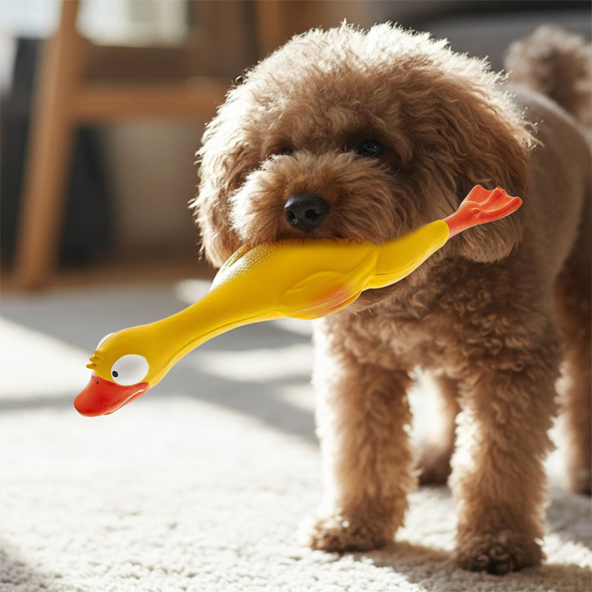 Le jouet canard en latex à grands yeux Ferribiella est conçu pour les chiots et chiens aimant jouer et mâchouiller. Fabriqué en latex souple, il stimule l’instinct de jeu, favorise l’éveil sensoriel et aide à réduire le stress. Léger, résistant et facile à attraper, il est idéal pour le jeu interactif et les moments de détente.