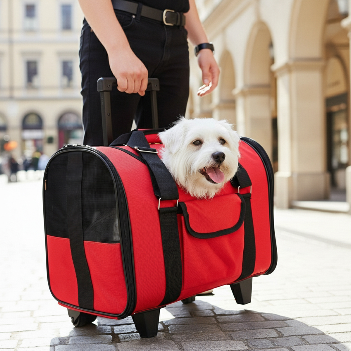 Ferribiella – Trolley de Transport pour Chiens et Chats Voyage Facile et Confortable – Taille Unique – 25 x 40 x 30 cm – Rouge