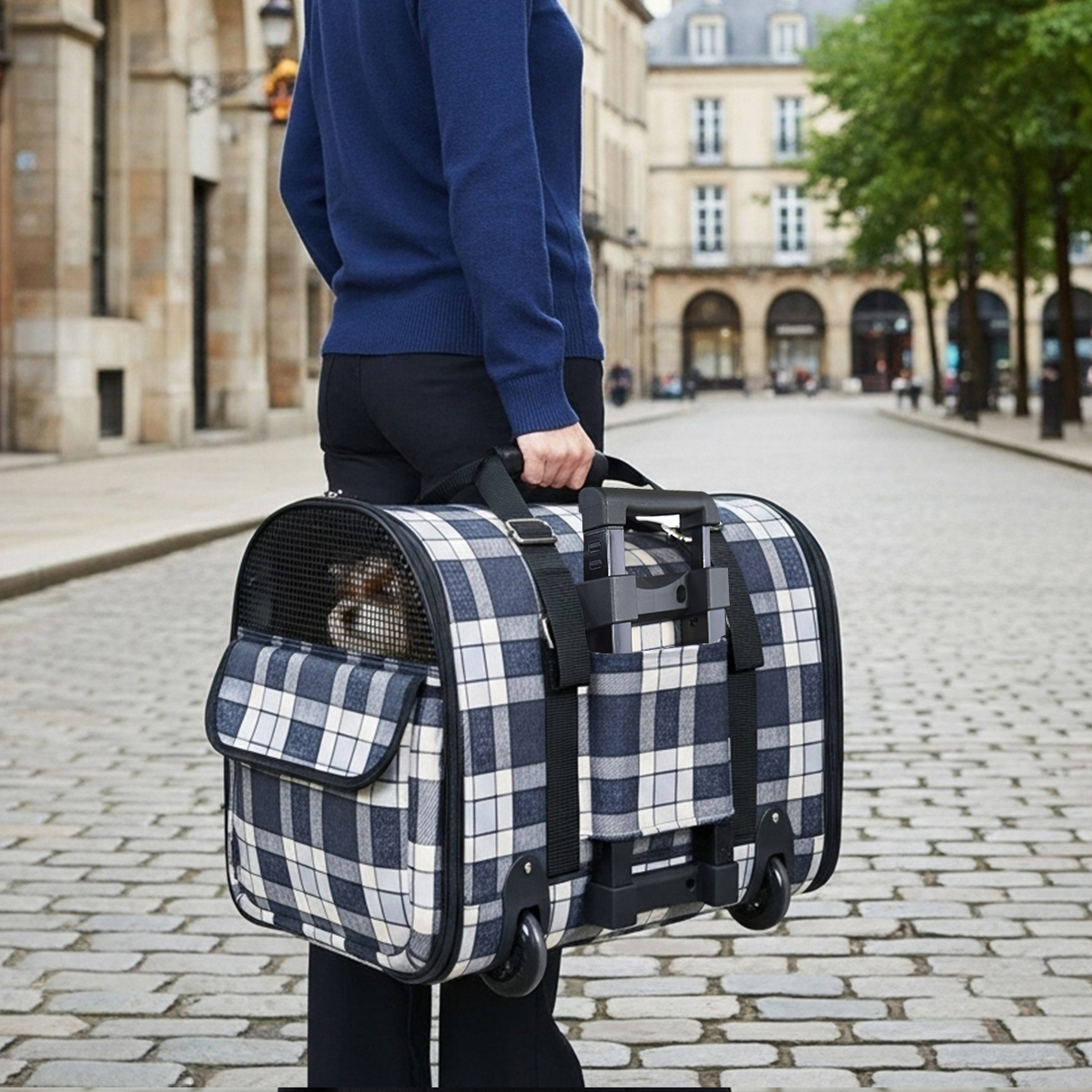 Ferribiella – Trolley de Transport pour Chiens et Chats Voyage Facile et Confortable – Taille Unique – 30 x 50 x x h35 cm – Gris