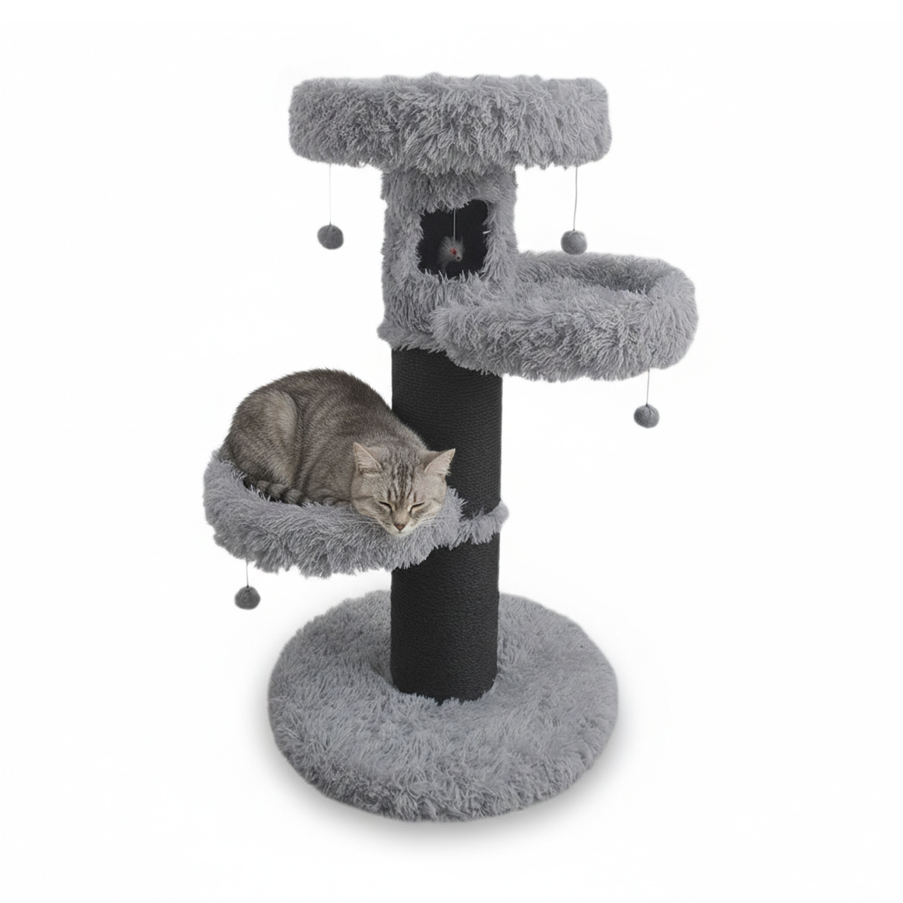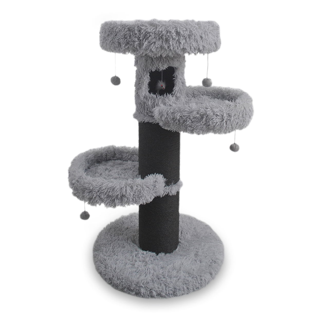 Duvoplus – Arbre à chat Farah avec plateformes et jouets pour chat, idéal pour griffer, jouer et se reposer confortablement – 60x60x110cm – Gris