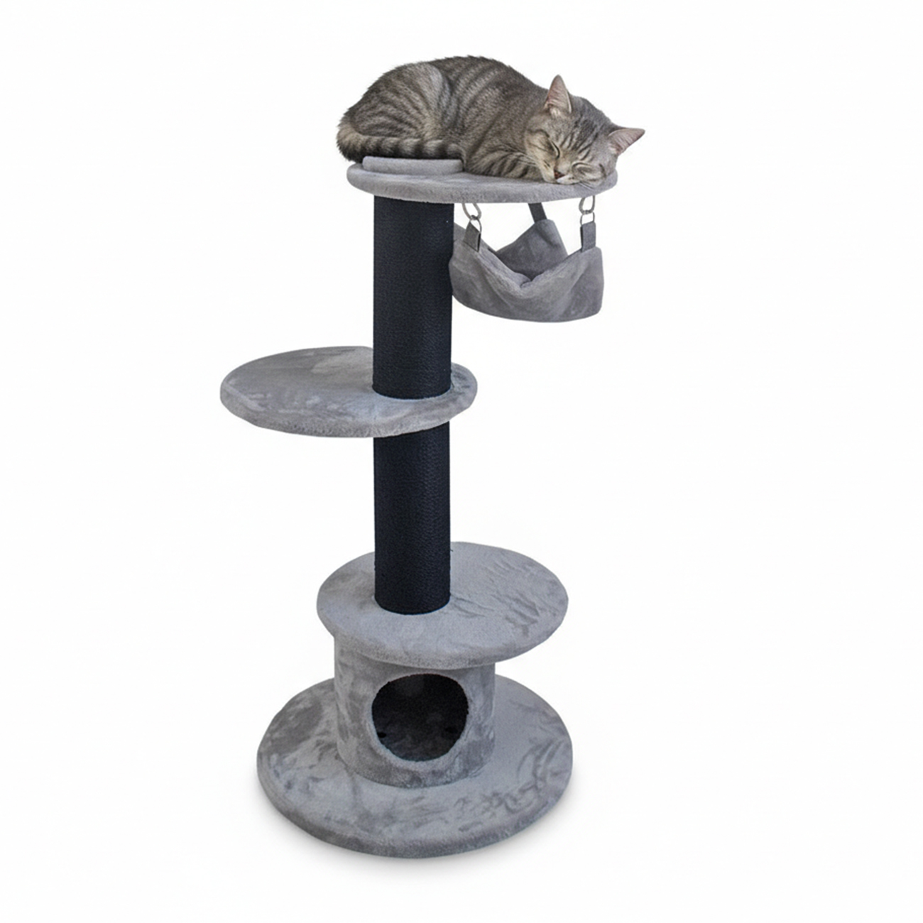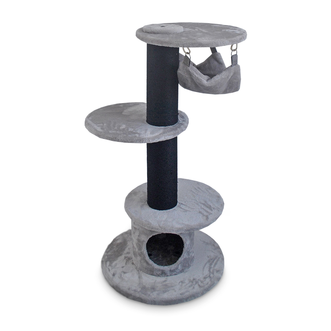 Duvoplus – Arbre à chat Gabriel avec plateforme et jouets pour chat, idéal pour griffer et se reposer en hauteur – 60x60x102cm – Gris/Noir