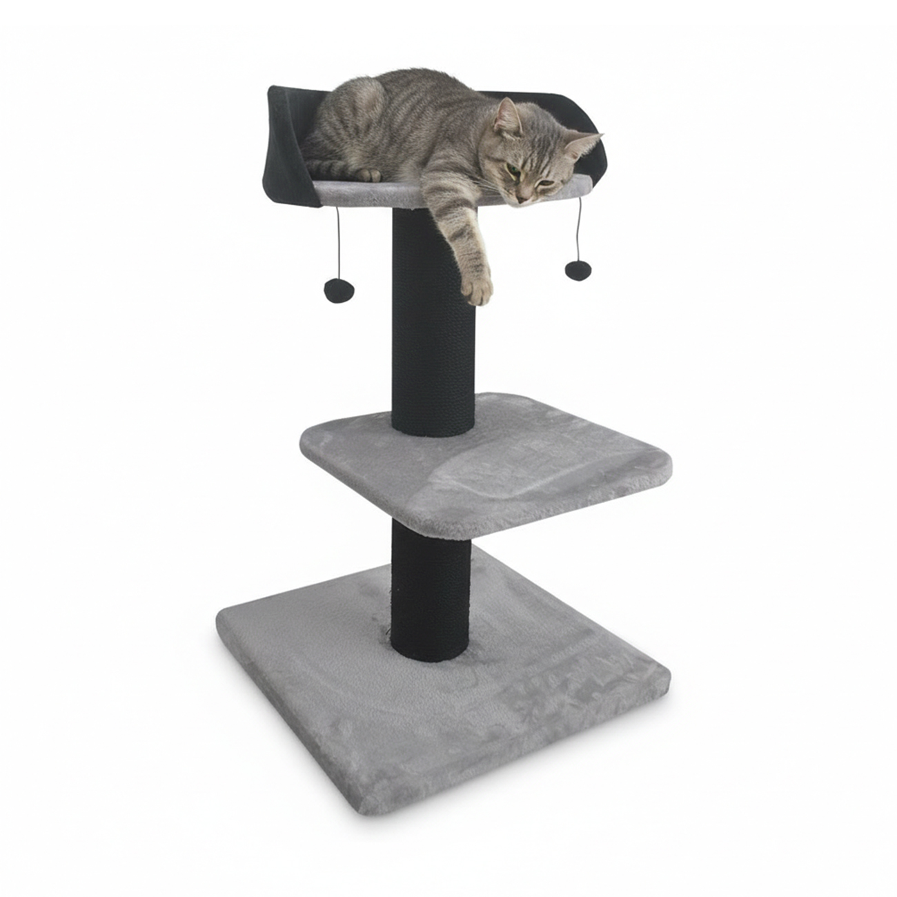 Duvoplus – Arbre à chat Gloria avec plateformes et jouets pour chat, idéal pour griffer et se détendre – 60x60x100cm – Gris/Noir