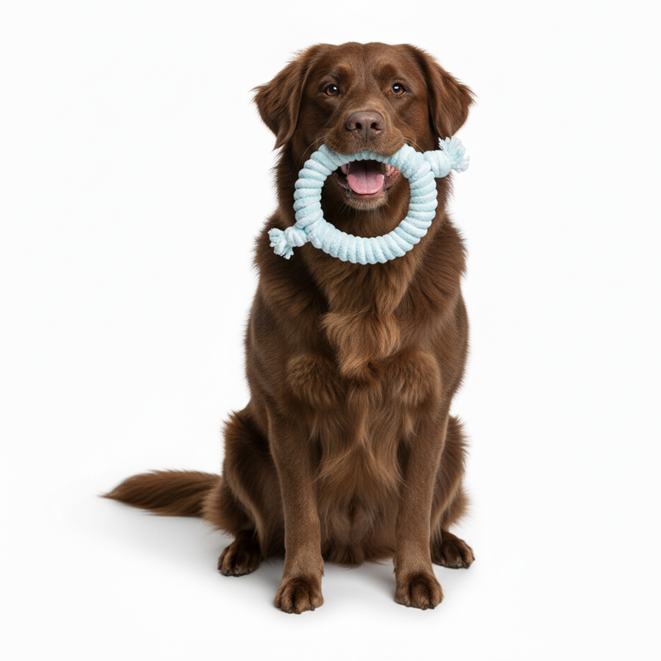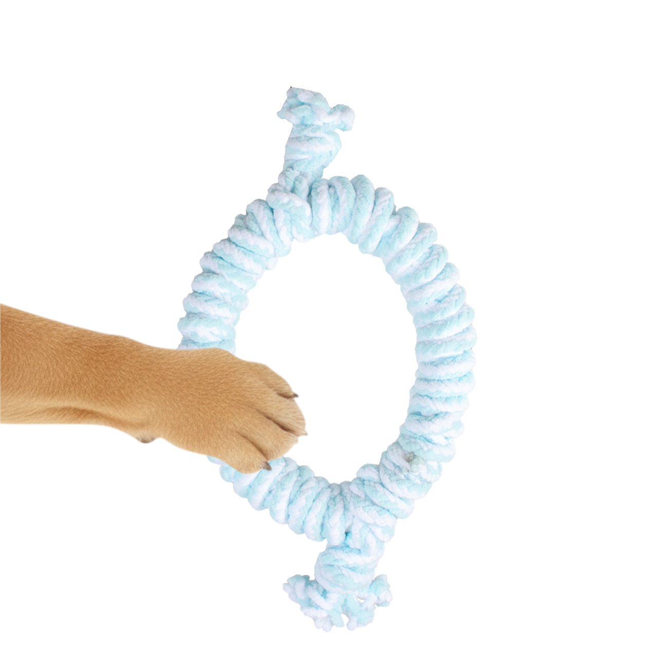 Duvoplus – corde à mâcher pour chiot/petit chien, Corde à soie dentaire, fabriquée dans un tissu souple, Les chiots adorent la câliner – 30x21x5cm – Couleur bleu/blanc