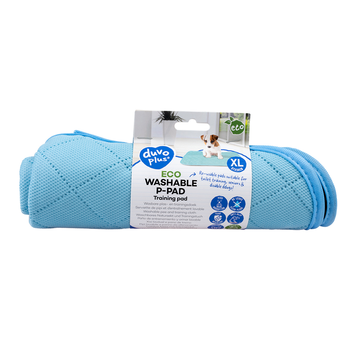 Duvoplus ECO P-Pad lavable tapis de propreté réutilisable pour chiot & chien – imperméable TPU, lavable 60°C, antidérapant – 67x50 cm – bleu