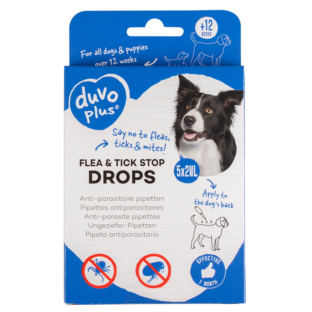 Pipettes Flea & Tick Stop Duvoplus conçu pour chien et chiot. Offre protection antiparasitaire au quotidien grâce à une conception fiable et ergonomique. Idéal pour garantir hygiène, confort et sécurité lors de l’utilisation. Format 5x2ml, finition T