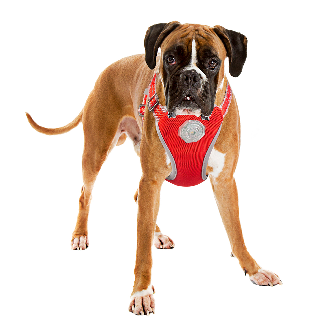 Duvoplus SEEcurity Flash Light – Harnais lumineux avec laisse pour chien – Taille 55–70 cm – LED rechargeable et bandes réfléchissantes – Rouge