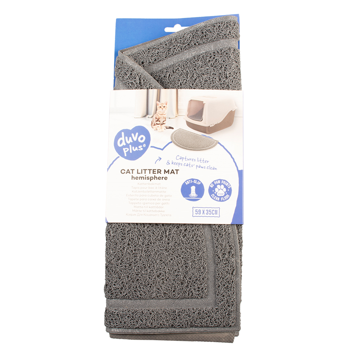 Duvoplus – Tapis de litière hémisphère pour chat, idéal pour limiter les grains éparpillés et protéger le sol autour du bac – 59x35 cm – Gris