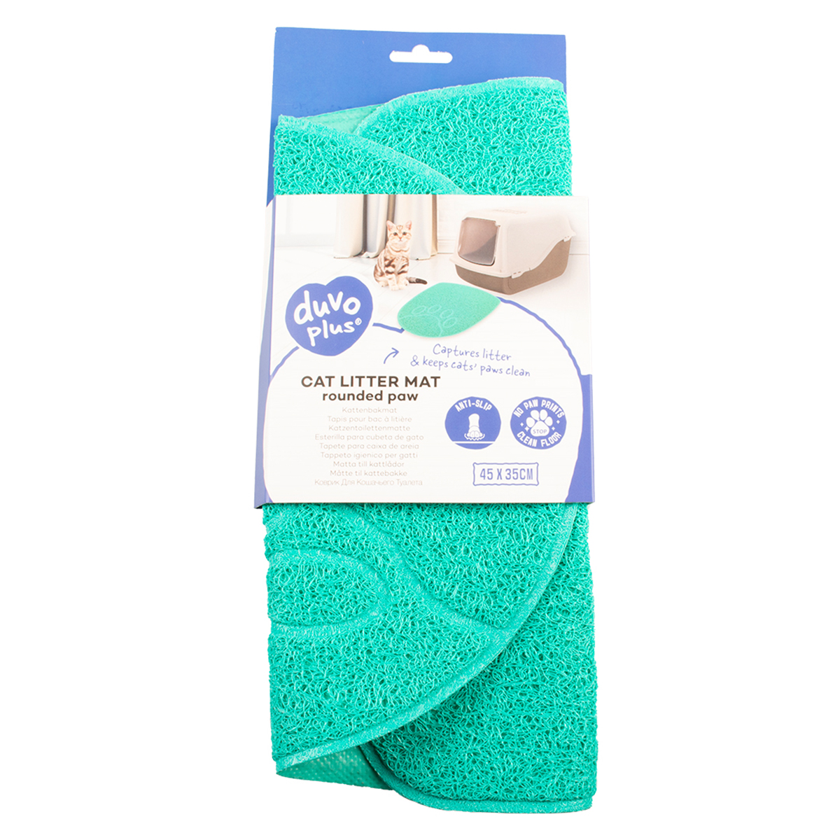 Duvoplus – Tapis de litière patte arrondie pour chat, idéal pour nettoyer les pattes en douceur et retenir la litière à la sortie – 45x35 cm – Petrol