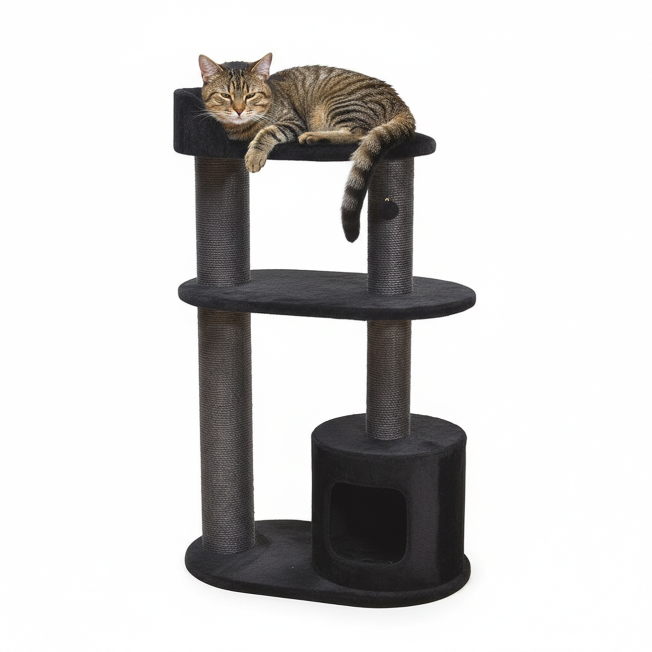 Ebi – Arbre à Chat Bedford avec Abri et Étages pour Chat – Griffer, Se Cacher et Observer En Hauteur – Unique – 78X48X127 cm – Noir