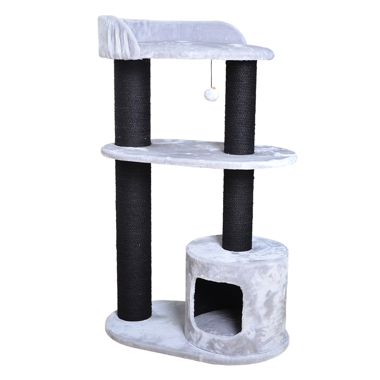 Ebi – Arbre à Chat Bedford avec Abri et Étages pour Chat – Griffer, Se Cacher et Se Reposer En Hauteur – Unique – 78X48X127 cm – Gris Clair