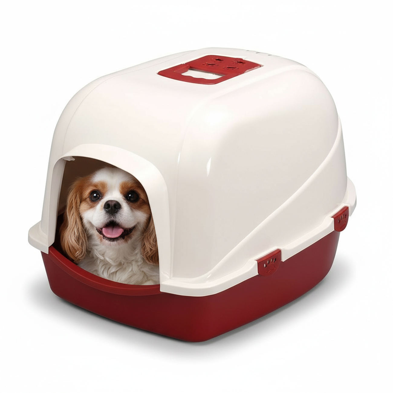 Laroy Group – Ebi – Bac à Litière Couvert Eclipse pour Chat, Idéal pour Limiter Les Odeurs Grâce Au Filtre Au Charbon et Garder La Litière à L’intérieur – Taille l – 56x70x46 cm – Blanc/Rouge pour Chi