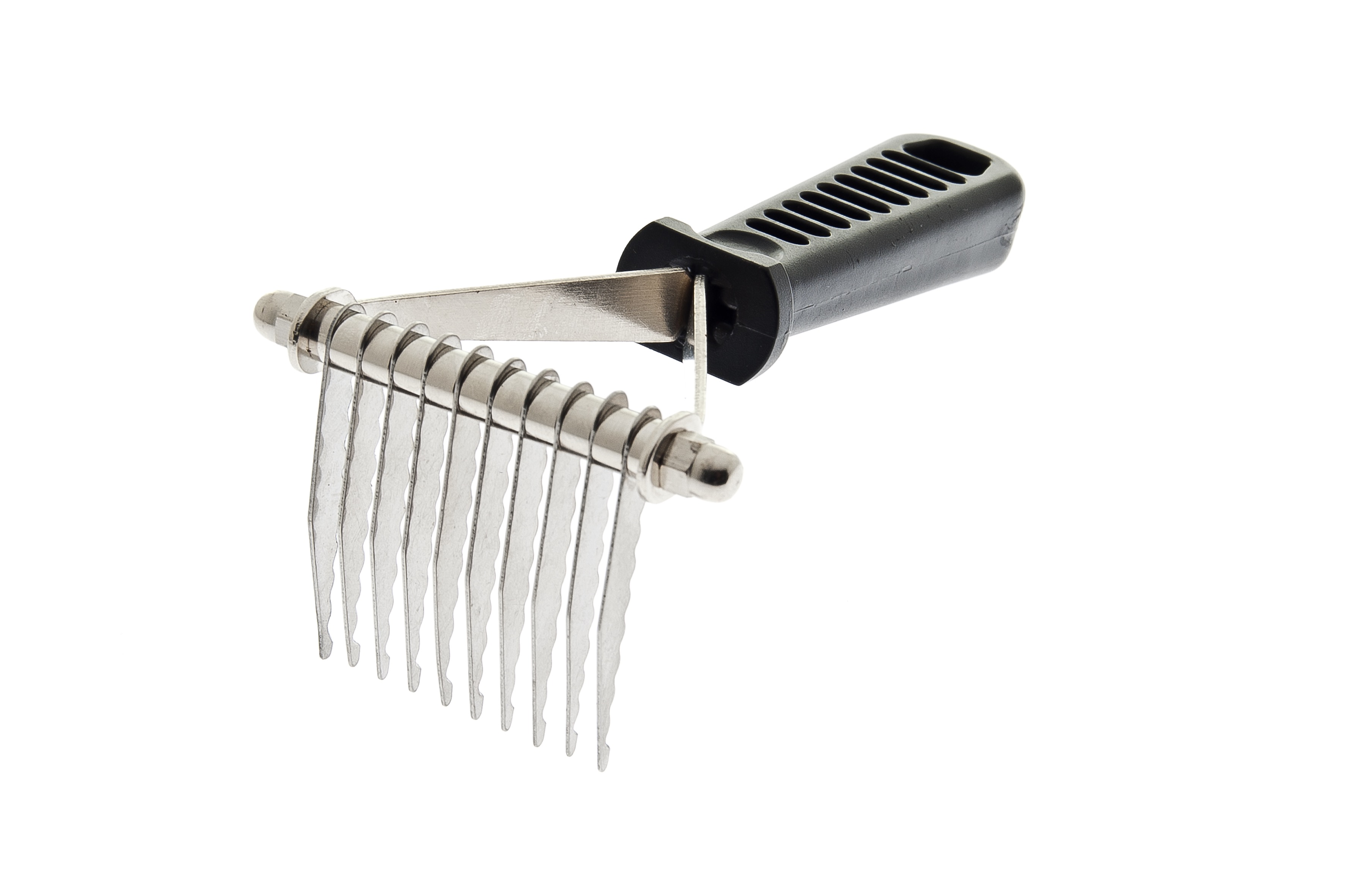 Taille-nœuds râteau 10 lames Ferribiella conçu pour chat et chien. Offre démêlage efficace au quotidien grâce à une conception fiable et ergonomique. Idéal pour garantir hygiène, confort et sécurité lors de l’utilisation. Format Medium, finition Noir