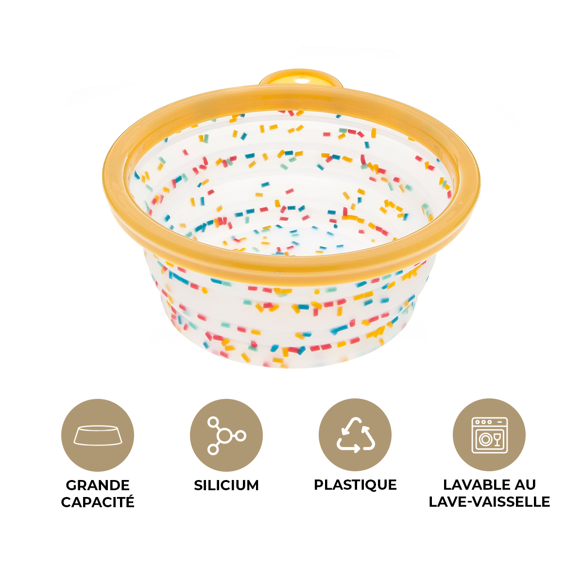 Ferribiella – Gamelle Confetti En Silicone pour Chien et Chat Antidérapante – Small – 1 L – 13 x 5,8 cm – Multicolore