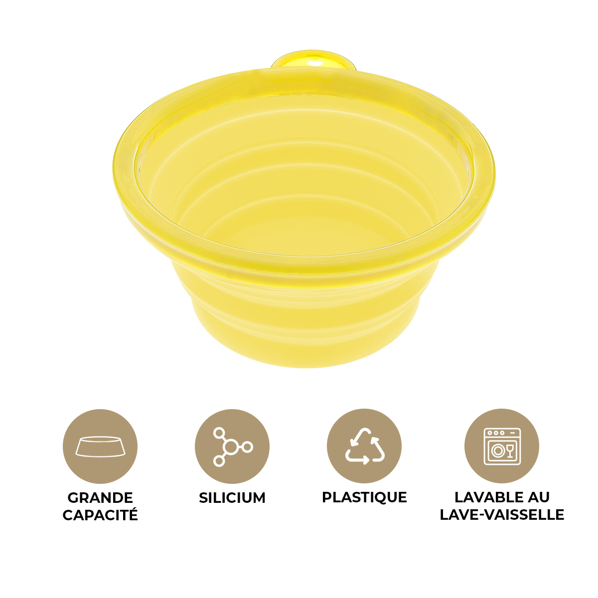 Ferribiella – Gamelle Pliable En Silicone pour Chien et Chat, Format Compact – Taille S – 355 ml – 13 x 5,8 cm – Jaune Fluo