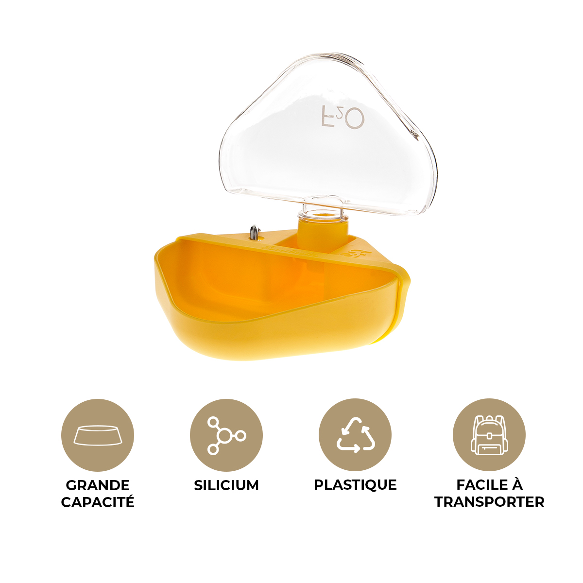 Ferribiella – Gamelle Gourde F2O pour Chien et Chat, Idéale pour L’Hydratation En Déplacement – Taille Unique – 14 x 14 x 5 cm – Jaune