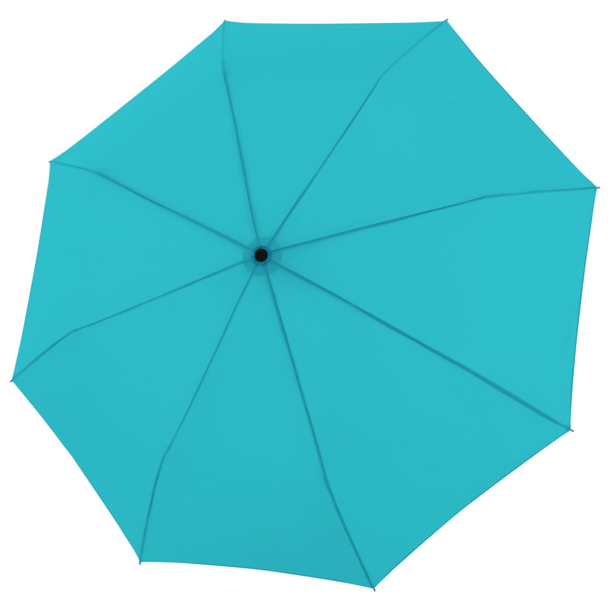 Mesdames et Messieurs, voici un joli parapluie aqua qui devrait vous ravir. Un partenaire fiable les jours de pluie.