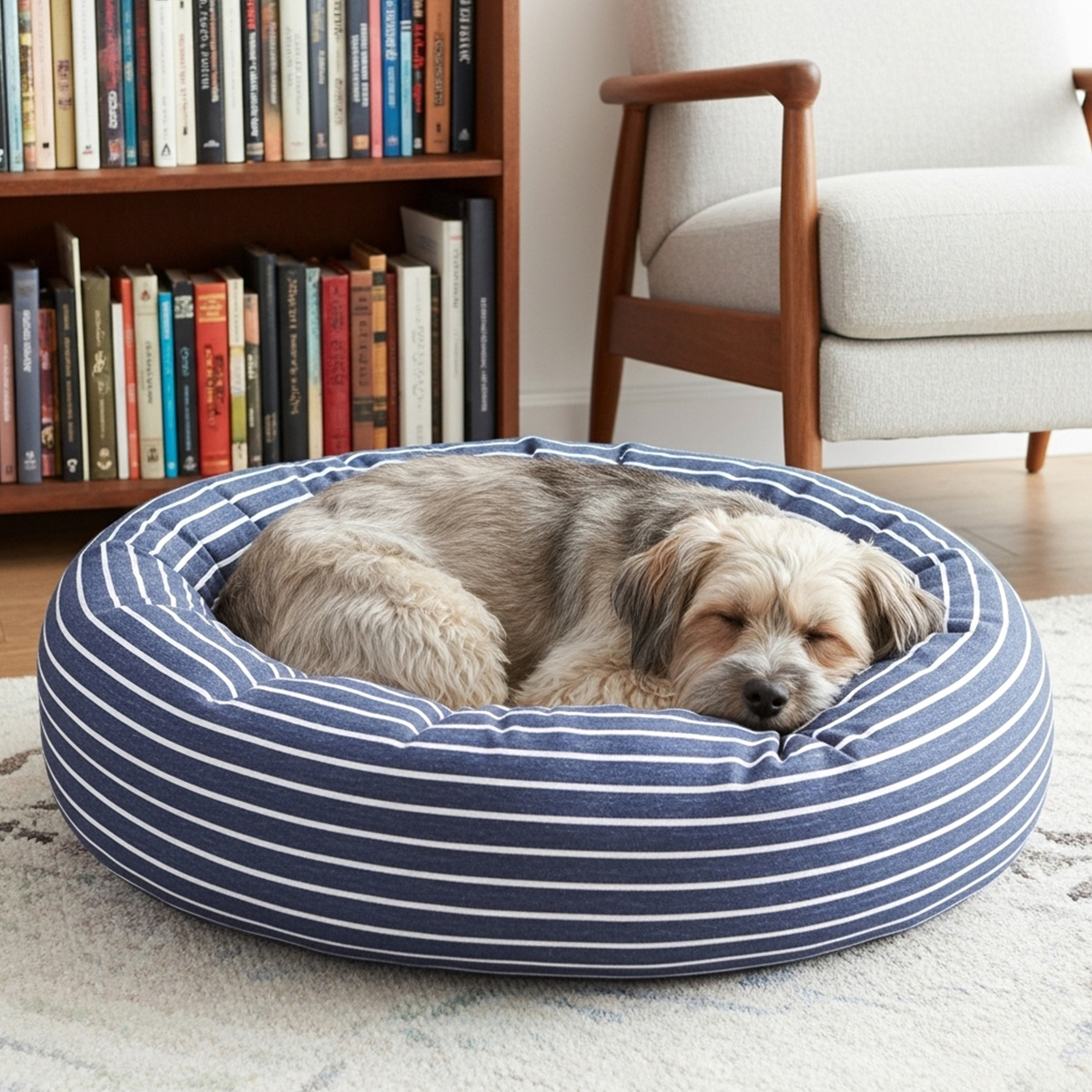 Le coussin Donut Mille Righe Ferribiella est conçu pour offrir un confort enveloppant grâce à sa forme circulaire. Idéal pour les chiens aimant se blottir, il favorise un repos profond et un sentiment de sécurité.