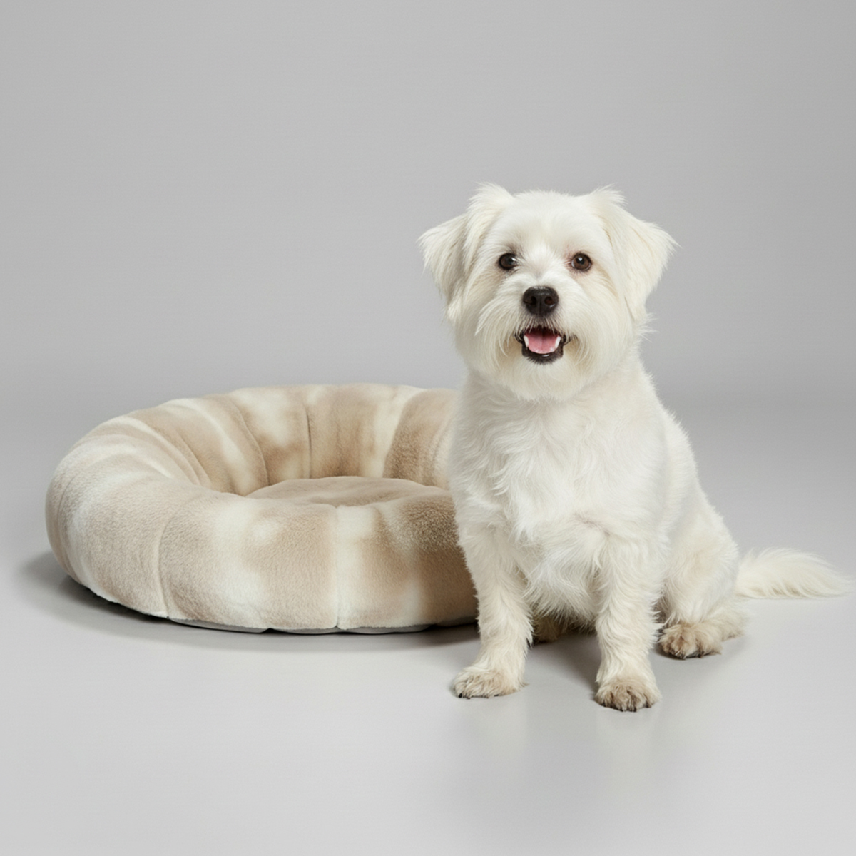Ferribiella – Corbeille Étreinte pour Chiens et Chats – Confort Thermique et Douceur au Repos – Taille Standard – 50 x 50 x 27 cm – Crème