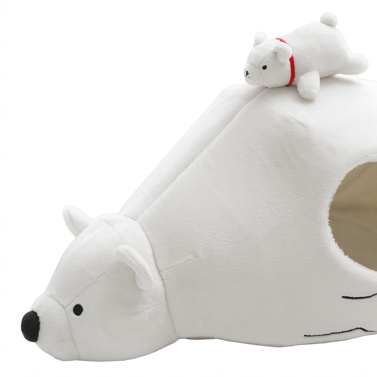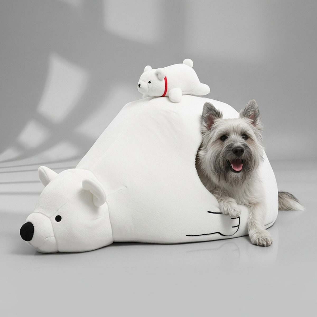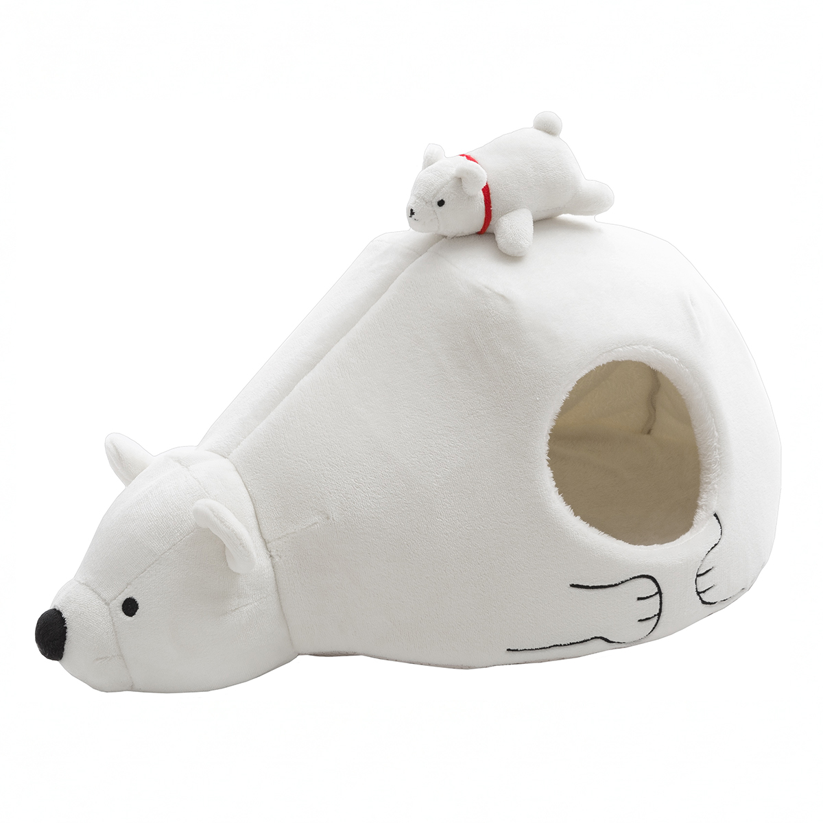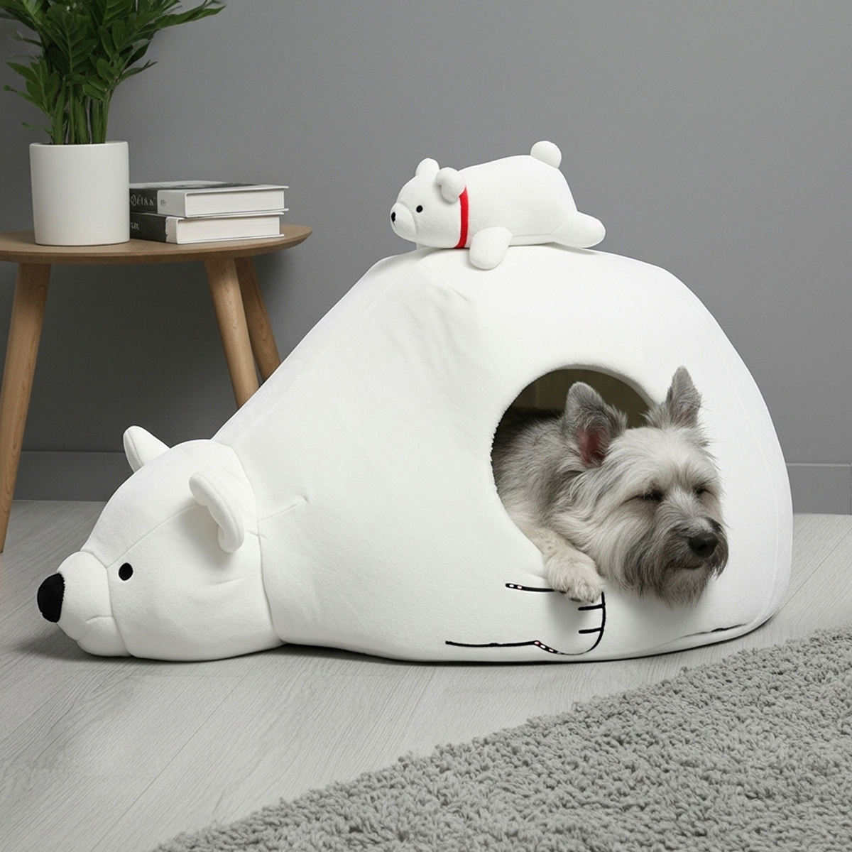 Ferribiella – Igloo Ours Blanc pour Chien Chaleur et Sécurité – Taille Unique – 70X43X40 cm – Crème Blanche