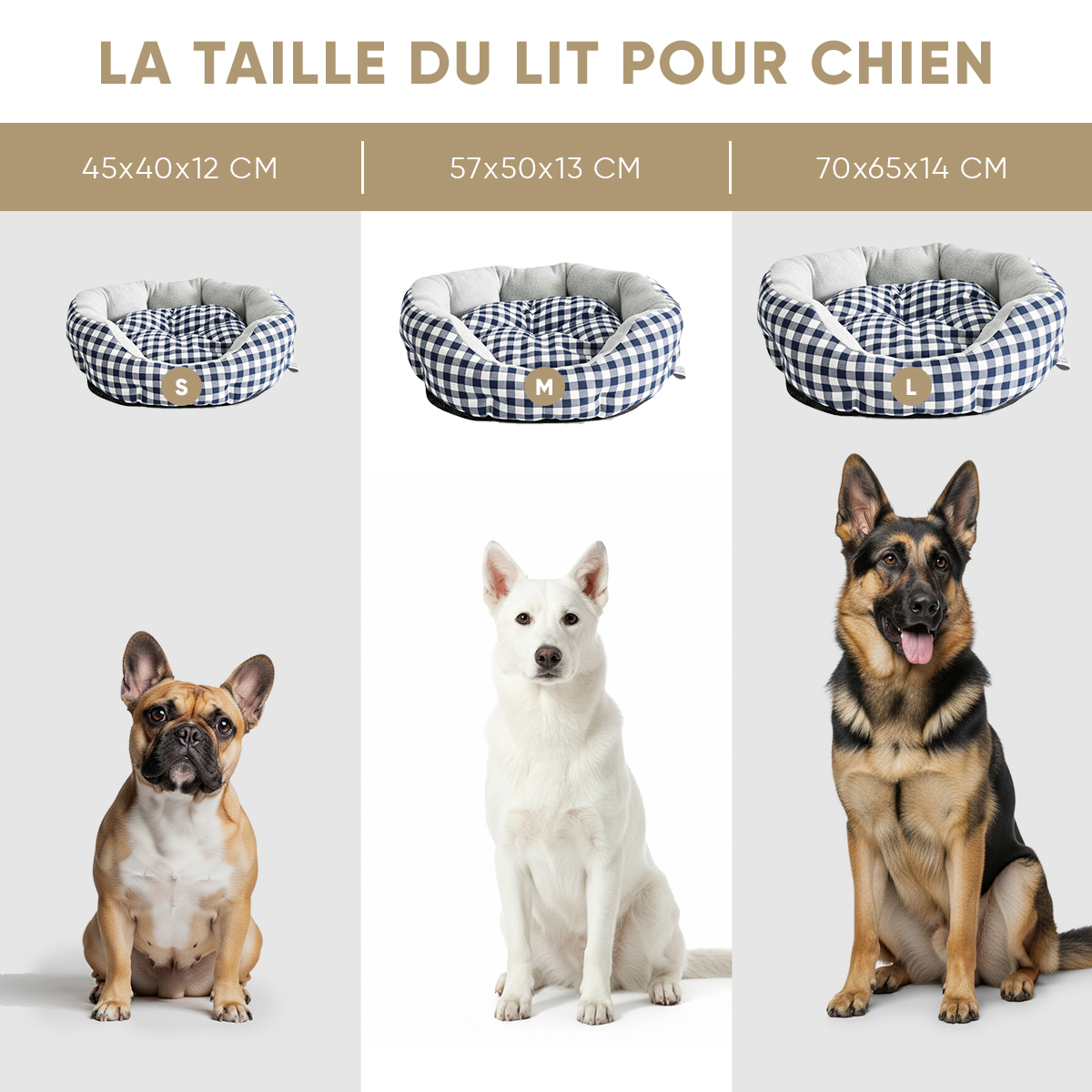 Ferribiella – Lit De Pique-Nique pour Chien Favorisant Détente et Polyvalence – Set 3 Pièces – Dimensions Variables – Gris