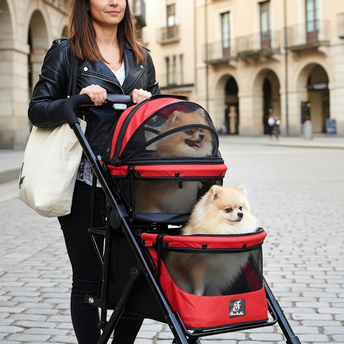 Ferribiella – Duplex Stroller 20KG Max 74X49X100CM pour Chiens et Chats Transport Confortable et Sécurisé – Jusqu’à 20 kg – 74 x 49 x 100 cm – Rouge